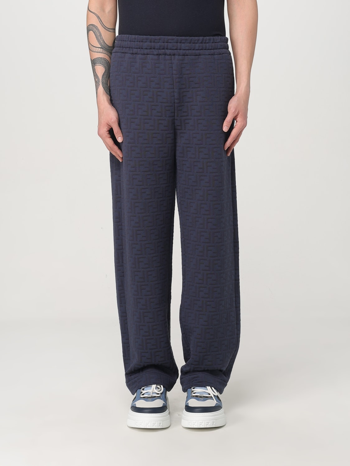 DESCRIPTION - Style: Sporty - Logo: FF monogram - Pockets: America - Waist: Stretch, Medium waist - Bottom: With straight hemline - Materials: Cotton blend - Pattern: Plain-colored, All-over monogram DETAILS AND CARE Composition 40% COTTON 60% POLYESTER SIZE AND FIT Sizes not available Size and fit Regular fit Designer code: FAB926AU8O F1H3O Giglio Code: G69199 Designer: Fendi Collection: Fendi Men Category: Clothing Fendi