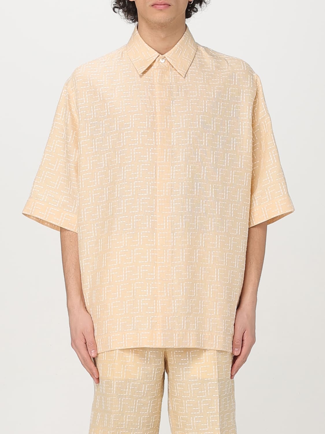 DESCRIPTION - Style: Casual - Logo: FF monogram - Neck: French - Shoulders: Relaxed - Closure: Concealed buttons - Bottom: With curved hemline - Materials: Linen, Cotton - Pattern: All-over monogram DETAILS AND CARE Composition 100%PL+NR8BOTT:MADREPERLA SIZE AND FIT Sizes not available Size and fit Relaxed fit Designer code: FS1317AU6Y F0PKL Giglio Code: 425123 Designer: Fendi Collection: Fendi Men Category: Clothing Fendi