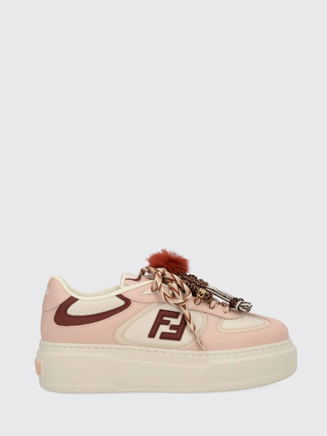 DESCRIPTION - Details: With bobble - Lining: Leather, With logo - Model: Lace up - Logo: FF monogram - Toe: Round - Ankle: Low top, Padded - Sole: Platform, Rubber - Materials: Mesh , Rubber, Suede - Pattern: Bicolor, Monogram DETAILS AND CARE Composition 100 AF SIZE AND FIT Sizes not available Designer code: 8E8721AY9N F1TPW Giglio Code: 432383 Designer: Fendi Collection: Fendi Woman Category: Shoes Fendi