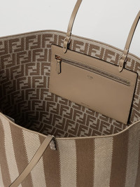 DESCRIPTION - Logo: With logo - Lining: With zip pocket, Leather, With laminated logo, With jacquard logo, Cotton canvas - Model: Shoulder - Closure: Absent - Shape: Flared - Handle: Double - Materials: Canvas, Cotton denim, Smooth calfskin, Cotton - Pattern: Two-tone stripes DETAILS AND CARE Composition 100 AF SIZE AND FIT Sizes Width : 35 cm Height: 32 cm Depth: 19,5 cm Designer code: 8BH425 AUPJ F1SNP Giglio Code: 429697 Designer: Fendi Collection: Fendi Woman Category: Bags Fendi