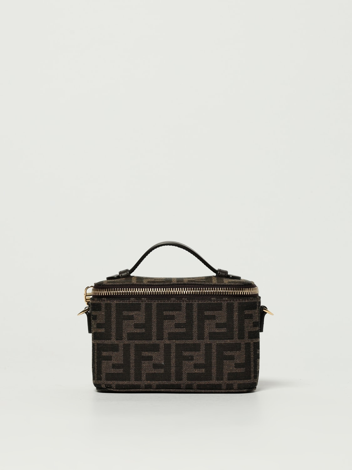 DESCRIPTION - Logo: FF monogram - Lining: With patch pockets - Model: Hand - Closure: With zips on three sides - Shape: Rectangular - Handle: Leather - Shoulder strap: Leather - Measurements: Shoulder strap length from shoulder: 54 cm - Materials: Smooth calfskin - Pattern: Monogram DETAILS AND CARE Composition 29%PL,28%PU,28%PA,15%CO+100%VIT SIZE AND FIT Sizes Width : 16 cm Height: 11 cm Depth: 8 cm Designer code: 8BS108AFPM F1GL7 Giglio Code: 432435 Designer: Fendi Collection: Fendi Woman Category: Bags Fendi