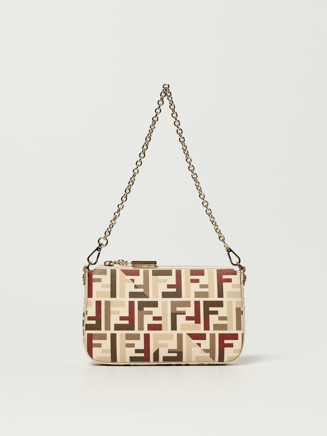 DESCRIPTION - Logo: FF monogram - Model: Shoulder - Closure: With zip - Shape: Rectangular - Handle: Metal mesh - Shoulder strap: Leather - Materials: Matt-grained coated cotton - Pattern: Monogram DETAILS AND CARE Composition 54%PU,22%PA,12%CO,12%PL SIZE AND FIT Sizes Width : 20 cm Height: 13 cm Depth: 3 cm Handle height: 13 cm Designer code: 8BS073AV1Y F1TVK Giglio Code: 432394 Designer: Fendi Collection: Fendi Woman Category: Bags Fendi