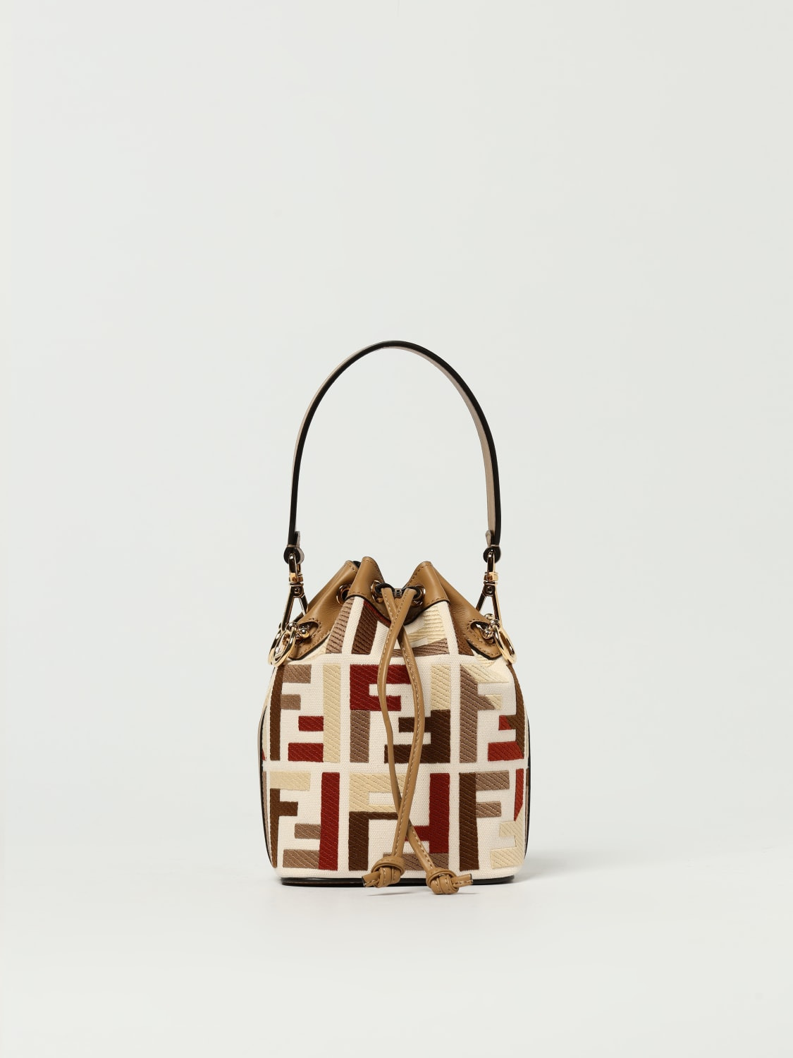 DESCRIPTION - Logo: FF monogram - Lining: With laminated logo - Model: Bucket - Closure: With drawstrings - Shape: Rectangular - Handle: Leather - Shoulder strap: Leather - Measurements: Shoulder strap length from shoulder: 54 cm - Materials: Smooth calfskin - Pattern: Monogram DETAILS AND CARE Composition 61%CO,39%PL SIZE AND FIT Sizes Width : 14 cm Height: 18 cm Depth: 12 cm Designer code: 8BS093AYDF F1TVK Giglio Code: 432425 Designer: Fendi Collection: Fendi Woman Category: Bags Fendi