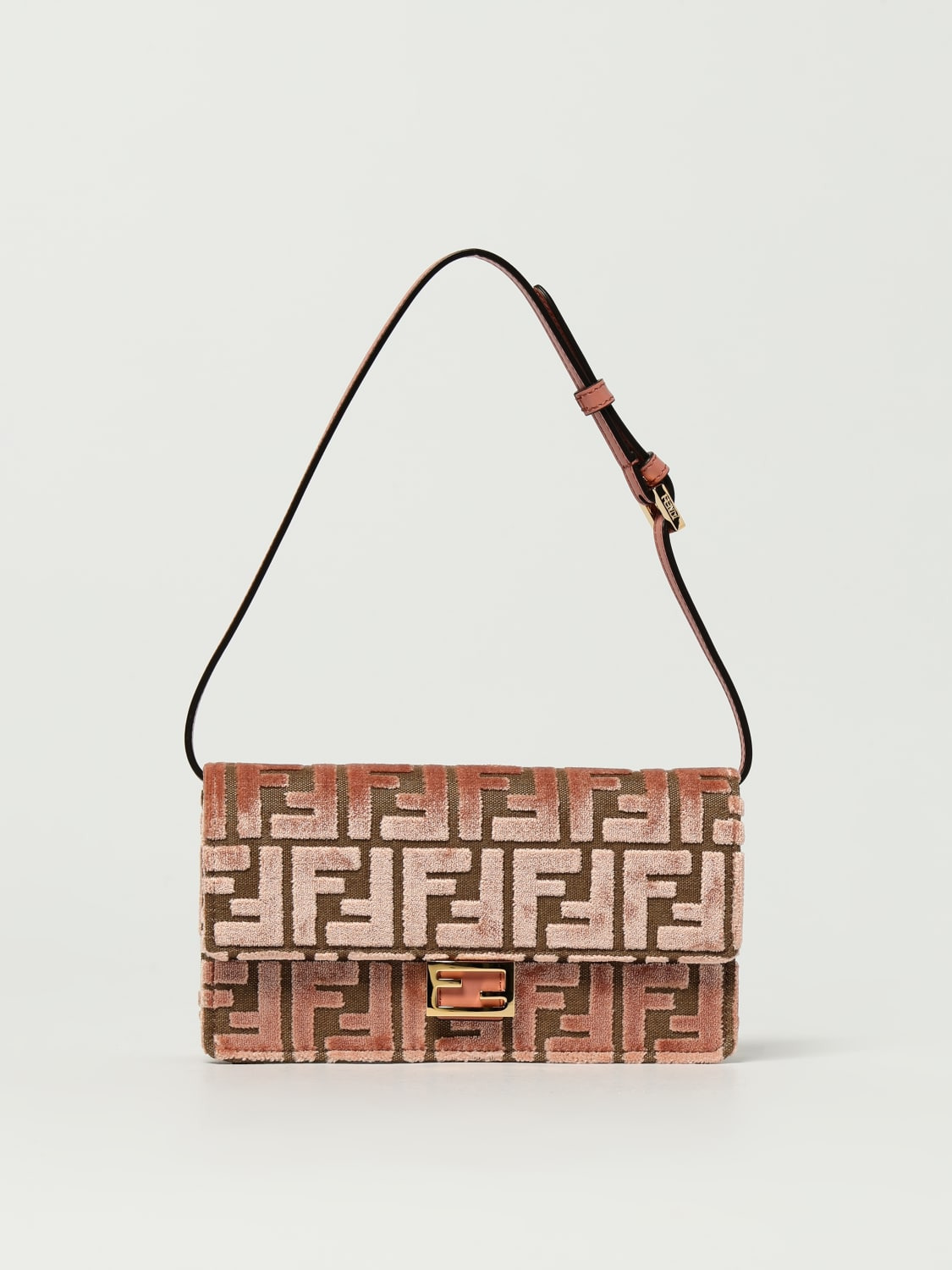 DESCRIPTION - Lining: With slit pockets - Model: Shoulder - Logo: FF monogram - Shape: Rectangular - Handle: Leather - Shoulder strap: Metal mesh - Measurements: Shoulder strap length from shoulder: 54 cm - Closure: With flap and magnetic buttons - Materials: Chenille - Pattern: Monogram DETAILS AND CARE Composition 39%PL,35%CO,25%VI,1%AF+100%VIT SIZE AND FIT Sizes Designer code: 8M0498AT14 F13VM Giglio Code: 432392 Designer: Fendi Collection: Fendi Woman Category: Accessories Fendi