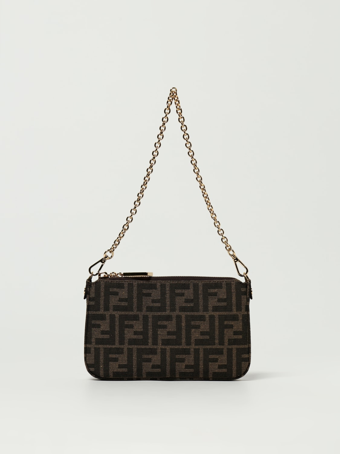 DESCRIPTION - Logo: FF monogram - Model: Shoulder - Closure: With zip - Shape: Rectangular - Handle: Metal mesh - Shoulder strap: Leather - Materials: Smooth calfskin - Pattern: Monogram DETAILS AND CARE Composition 27%PL,27%PA,27%PU,15%CO,4%RES SIZE AND FIT Sizes Width : 20 cm Height: 13 cm Depth: 3 cm Handle height: 13 cm Designer code: 8BS073AD23 F1GE3 Giglio Code: 432389 Designer: Fendi Collection: Fendi Woman Category: Bags Fendi