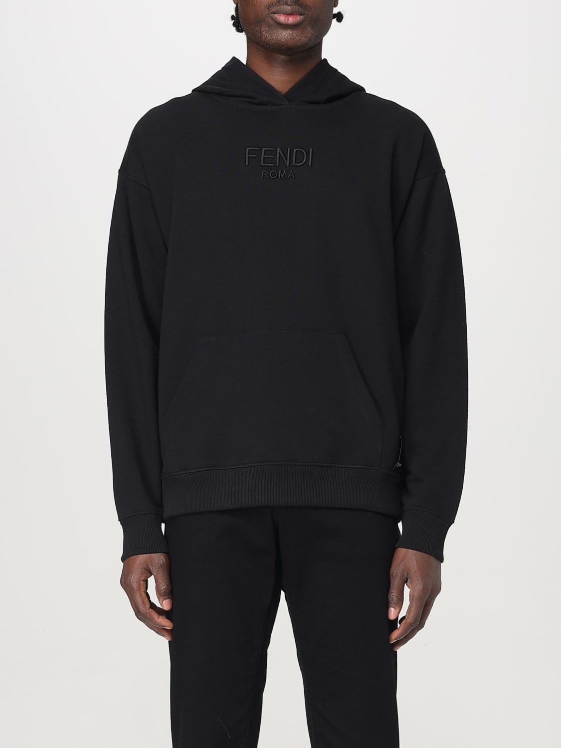 DESCRIPTION - Style: Basic - Logo: Embroidered, Tone-on-tone - Model: With hood - Shoulders: Relaxed - Sleeves: Long - Pockets: Kangaroo pocket - Bottom: With straight hemline - Materials: Cotton - Pattern: Plain-colored DETAILS AND CARE Composition 100% Cotton SIZE AND FIT Sizes not available Size and fit Relaxed fit Designer code: FY1143ATLO F0QA1 Giglio Code: G49888 Designer: Fendi Collection: Fendi Men Category: Clothing Fendi