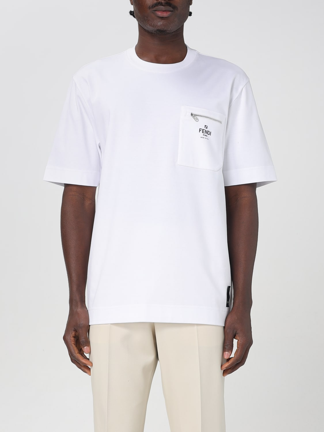 DESCRIPTION - Style: Casual - Logo: Contrasting - Model: Crewneck - Neckline: Crewneck - Shoulders: Regular - Sleeves: Short - Pockets: Patch pocket with zip - Bottom: With straight hemline - Materials: Cotton - Pattern: Logo DETAILS AND CARE Composition 100%CO SIZE AND FIT Sizes not available Size and fit Regular fit Designer code: FY0936ARYR F0QA0 Giglio Code: 425132 Designer: Fendi Collection: Fendi Men Category: Clothing Fendi