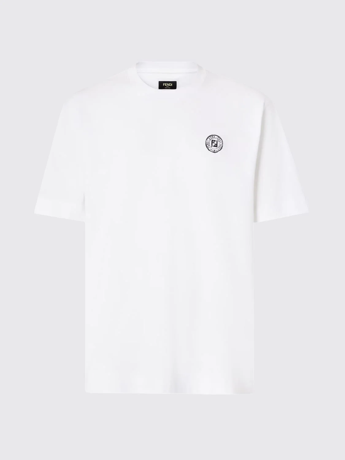 DESCRIPTION - Style: Sporty - Logo: Contrasting - Model: Crewneck - Neckline: Crewneck - Shoulders: Regular - Sleeves: Short - Bottom: With straight hemline - Materials: Cotton - Pattern: Logo, Plain-colored DETAILS AND CARE Composition GENERAL COTTON 100 - SIZE AND FIT Sizes not available Size and fit Slim fit Designer code: FY1319AV0H F0QA0 Giglio Code: H25515 Designer: Fendi Collection: Clothing Fendi Category: Clothing > T-shirt
