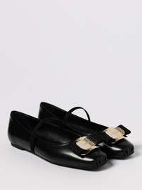 DESCRIPTION - Logo: Engraved - Details: With metal plate, With ribbons - Lining: Leather, With logo - Model: Ballet flats - Toe: Round - Sole: Leather - Materials: Smooth calfskin - Pattern: Plain-colored DETAILS AND CARE Composition _COVER 100%LE SOLE 100%EL SIZE AND FIT Sizes not available Designer code: 01H345 768868 005 Giglio Code: G55415 Designer: Ferragamo Collection: Ferragamo Woman Category: Shoes Ferragamo
