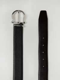 DESCRIPTION - Logo: Engraved, Lettering - Details: With belt loops - Model: Adjustable, Reversible - Closure: With monogram buckle - Measurements: Width: 3.5 cm - Materials: Grained calfskin - Pattern: Plain-colored DETAILS AND CARE Composition 100% calf leather SIZE AND FIT Sizes not available Designer code: 679781 675140 NERO Giglio Code: G78459 Designer: Ferragamo Collection: Ferragamo Men Category: Accessories Ferragamo