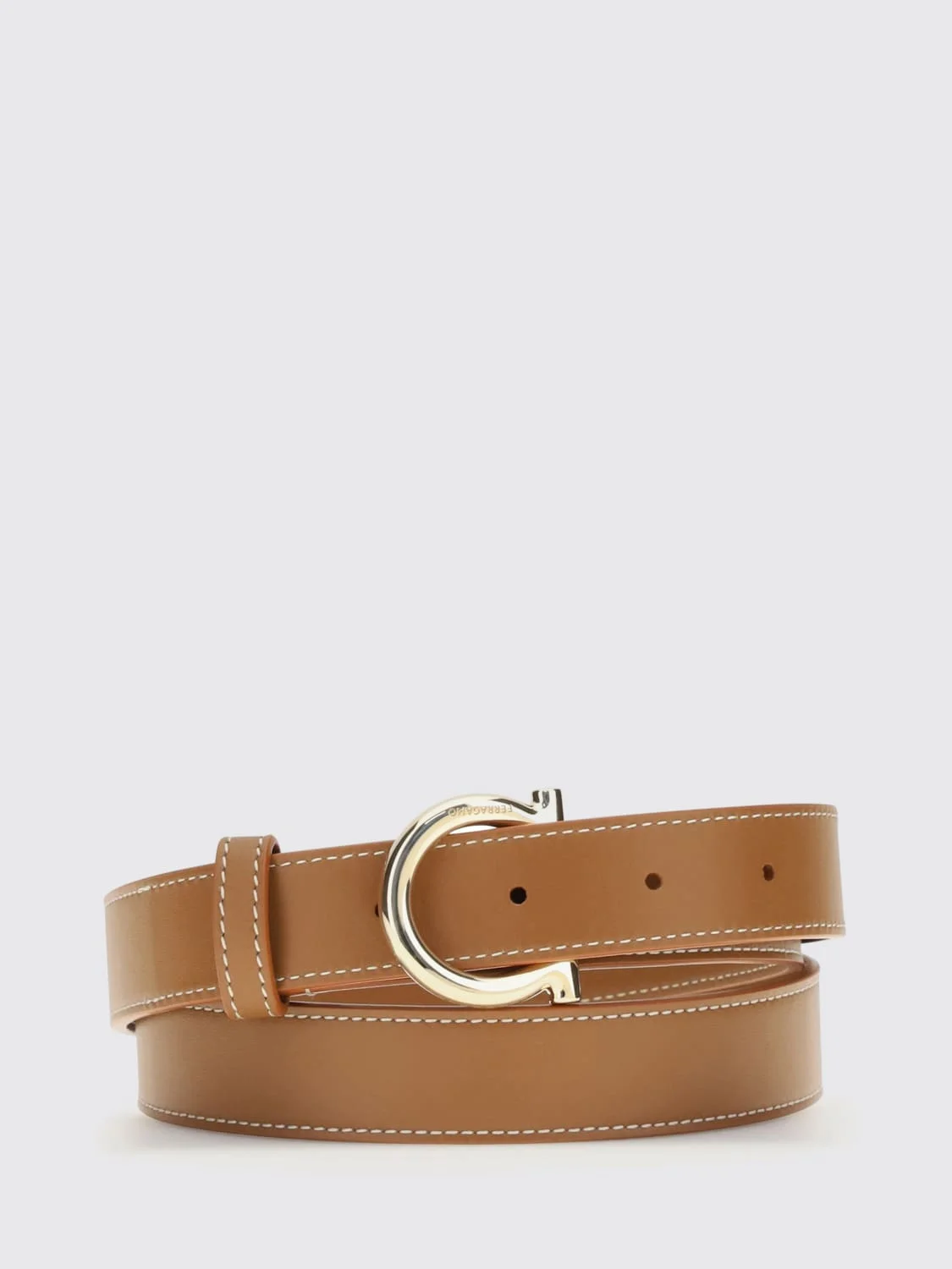 DESCRIPTION - Style: Classic - Details: With contrasting seams - Model: Adjustable - Closure: Interlocking - Logo: Gancini - Materials: Calfskin - Pattern: Plain-colored - Measurements: Hohe: 2,5 cm DETAILS AND CARE Composition 100% calfskin leather (Bos Taurus) SIZE AND FIT Sizes not available Designer code: 790112 NATURALERST Giglio Code: H99444 Designer: Ferragamo Collection: Accessories Ferragamo Category: Accessories > Belt
