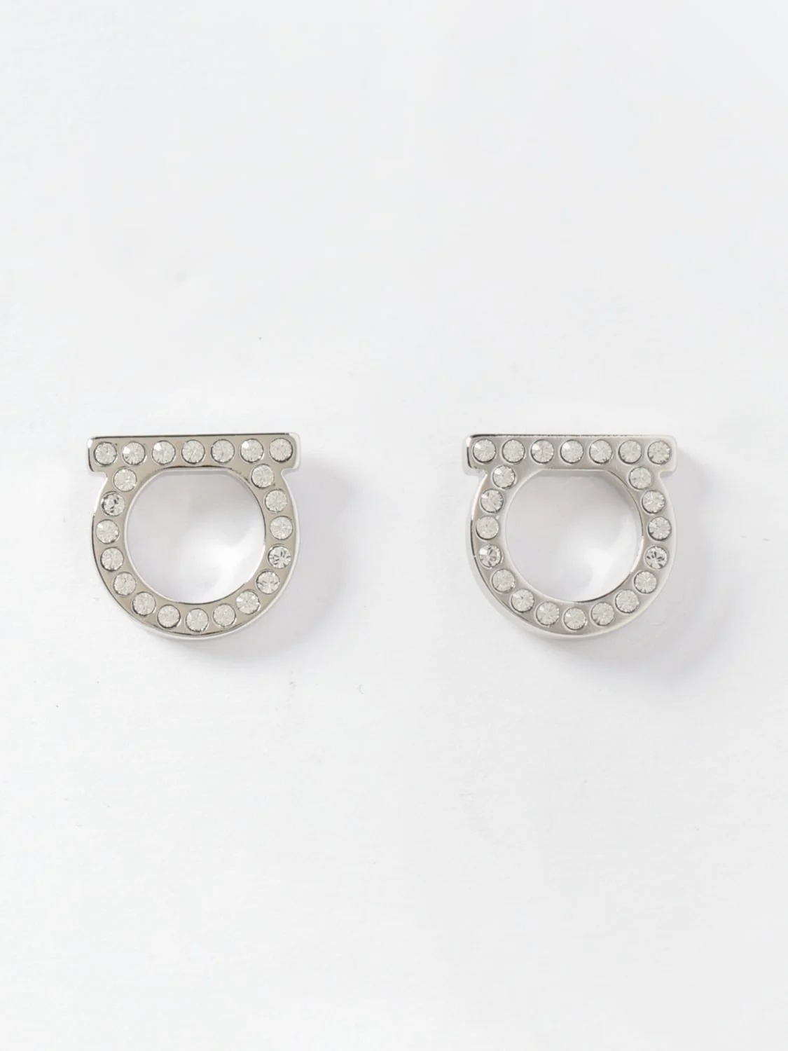 DESCRIPTION - Logo: Gancini - Details: With rhinestones - Model: Button - Closure: With press pin - Materials: Brass - Pattern: All-over monogram DETAILS AND CARE Composition 10% GLASS + 90% BRASS SIZE AND FIT Sizes not available Designer code: 760122 696574 002 Giglio Code: 423997 Designer: Ferragamo Collection: Ferragamo Woman Category: Accessories Ferragamo