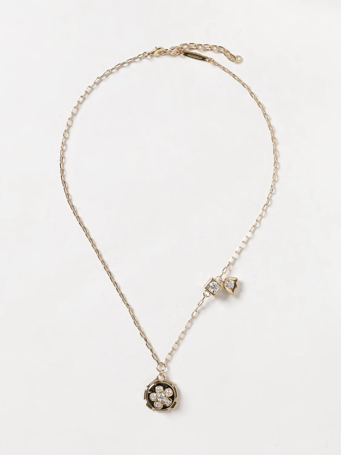 DESCRIPTION - Style: Romantic - Details: With charms, With rhinestones - Model: Crewneck - Closure: Trigger - Occasion: Morning - Materials: Brass, Crystals - Pattern: Embroidery, Floral DETAILS AND CARE Composition 90% brass 5% glass 5% enamel SIZE AND FIT Sizes not available Designer code: 760938 790710 ORO/BLACK Giglio Code: I03528 Designer: Ferragamo Collection: Accessories Ferragamo Category: Accessories > Jewel