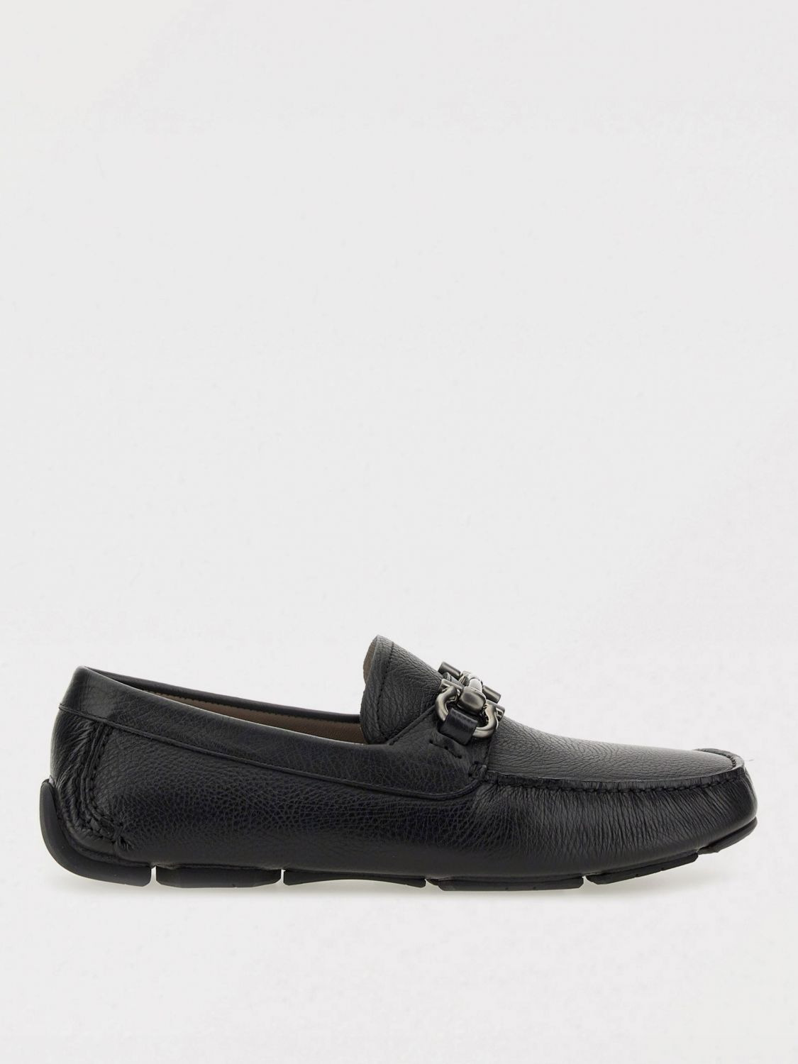 DESCRIPTION - Logo: Gancini - Details: With penny keeper - Lining: With logo - Toe: Raised toe box - Sole: Rubber - Materials: Hammered leather - Pattern: Monogram DETAILS AND CARE Composition LEATHER SIZE AND FIT Sizes not available Designer code: 755610 02C398 075 Giglio Code: H42214 Designer: Ferragamo Collection: Ferragamo Men Category: Shoes Ferragamo