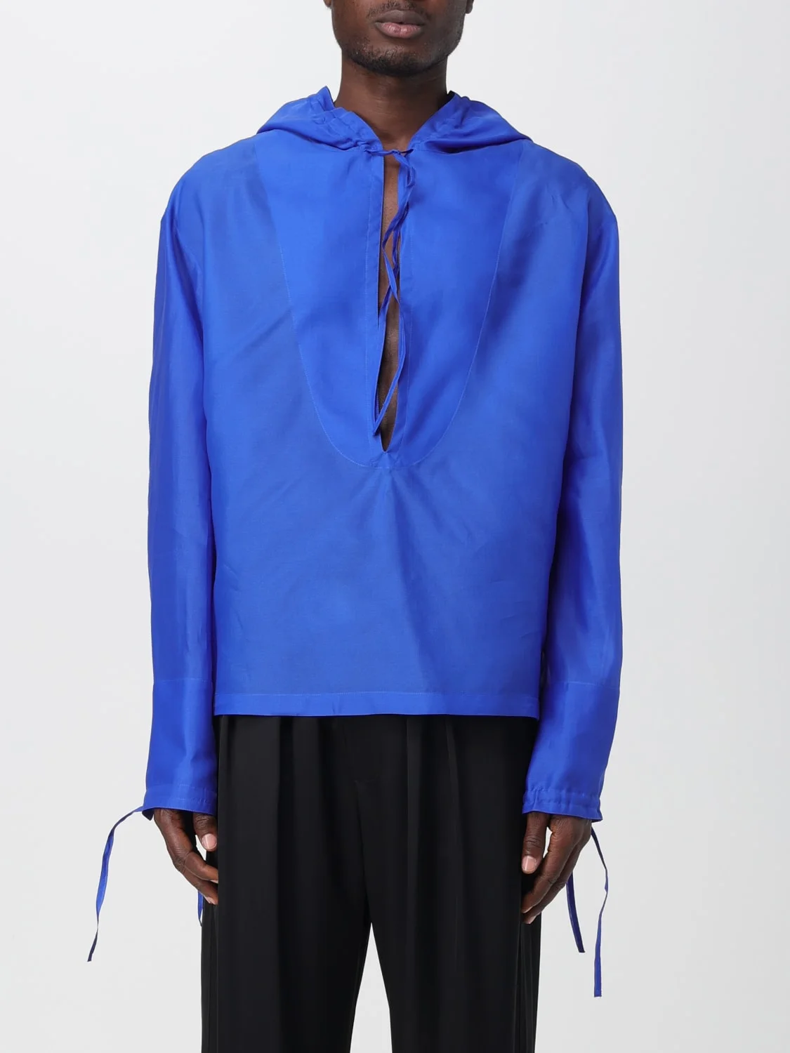 DESCRIPTION - Style: Contemporary - Neckline: V neckline - Shoulders: Relaxed - Bottom: With curved hemline - Model: With hood - Sleeves: Long sleeve shirts - Materials: Organza - Pattern: Plain-colored DETAILS AND CARE Composition 71%SE 29%PA SIZE AND FIT Sizes not available Size and fit Relaxed fit Designer code: 763863 004 Giglio Code: E91046 Designer: Ferragamo Collection: Ferragamo Men Category: Clothing Ferragamo