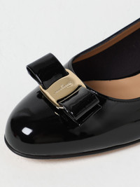 DESCRIPTION - Logo: Engraved - Details: With bow, With metal plate - Lining: Leather, With logo - Model: Slip on - Toe: Round - Sole: Leather - Heel: Low - Materials: Patent leather - Pattern: Plain-colored DETAILS AND CARE Composition TOMAIO: 100% CALF NAPLAK + BOWS GROS(50% SIZE AND FIT Sizes Heel: 3 cm Designer code: 01B221 591963 216 Giglio Code: 423982 Designer: Ferragamo Collection: Ferragamo Woman Category: Shoes Ferragamo