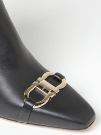 DESCRIPTION - Logo: Gancini, Metallic - Lining: Leather, With logo - Model: Slip on - Closure: Side closure with zip - Toe: Round - Shaft: Low - Sole: Leather - Heel: Medium heel - Materials: Nappa leather - Pattern: Plain-colored DETAILS AND CARE Composition | SIZE AND FIT Sizes Heel: 6 cm Designer code: 01H633 769254 001 Giglio Code: F94324 Designer: Ferragamo Collection: Ferragamo Woman Category: Shoes Ferragamo