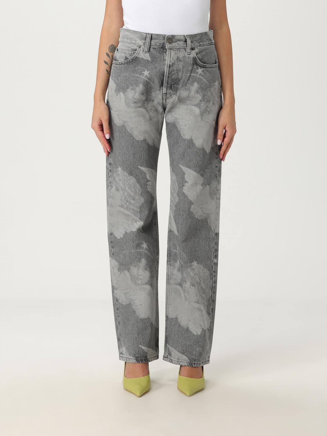 DESCRIPTION - Style: Urban-street - Pockets: 5-pocket - Waist: High waist - Bottom: With straight hemline - Closure: With button and zip - Materials: Cotton denim - Pattern: Graphic DETAILS AND CARE Composition 100% Cotone SIZE AND FIT Sizes not available Size and fit Regular fit Designer code: U01FMDJE075DN03 DN07 Giglio Code: H26873 Designer: Fiorucci Collection: Fiorucci Woman Category: Clothing Fiorucci