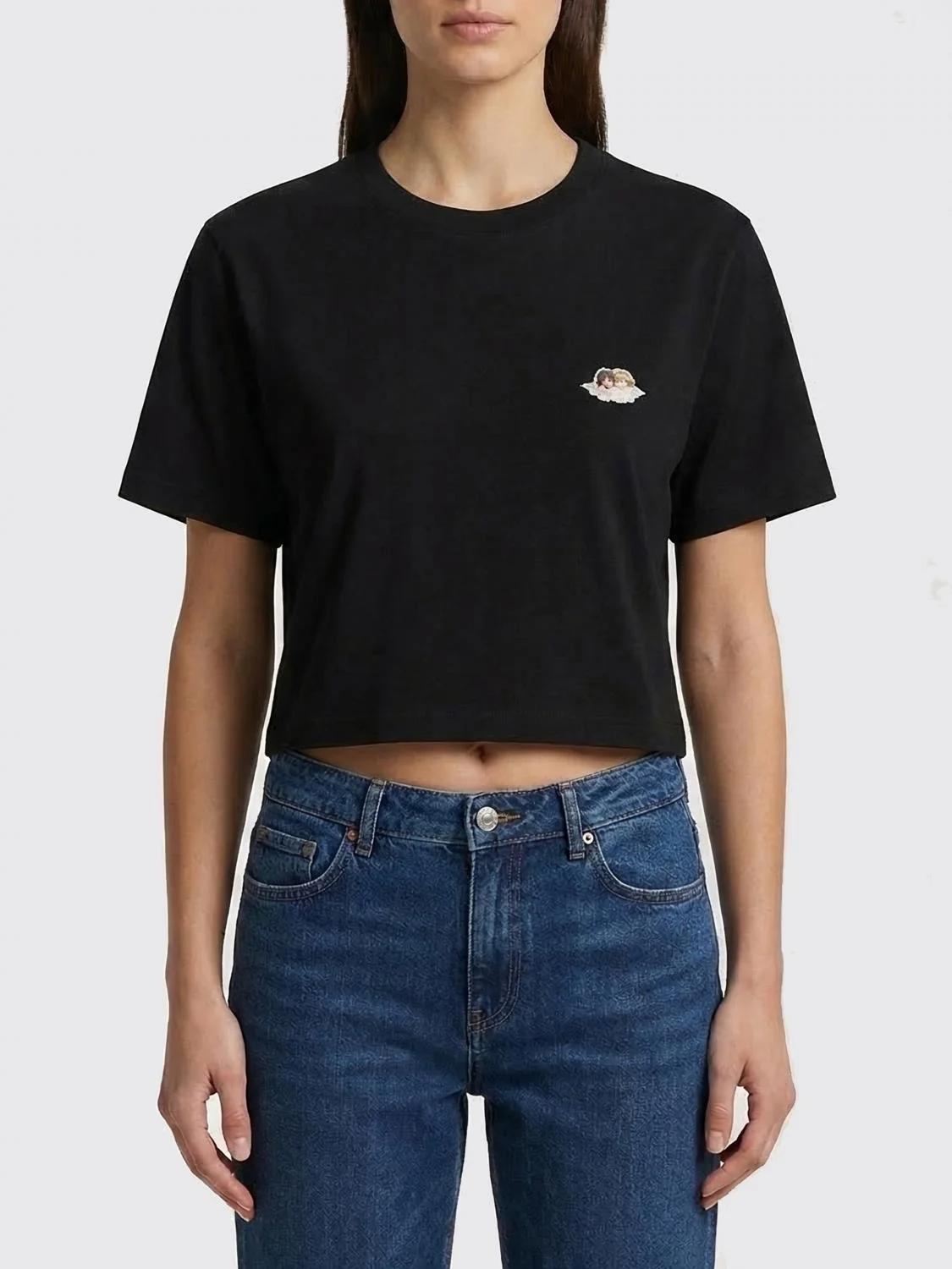 DESCRIPTION - Style: Casual - Logo: Contrasting - Neckline: Crewneck - Shoulders: Regular - Sleeves: Short - Bottom: With straight hemline - Materials: Cotton - Pattern: Logo, Plain-colored DETAILS AND CARE Composition | SIZE AND FIT Sizes not available Size and fit Cropped fita Designer code: W02FPTSH094CJ03 BK01 Giglio Code: I16856 Designer: Fiorucci Collection: Clothing Fiorucci Category: Clothing > T-Shirt