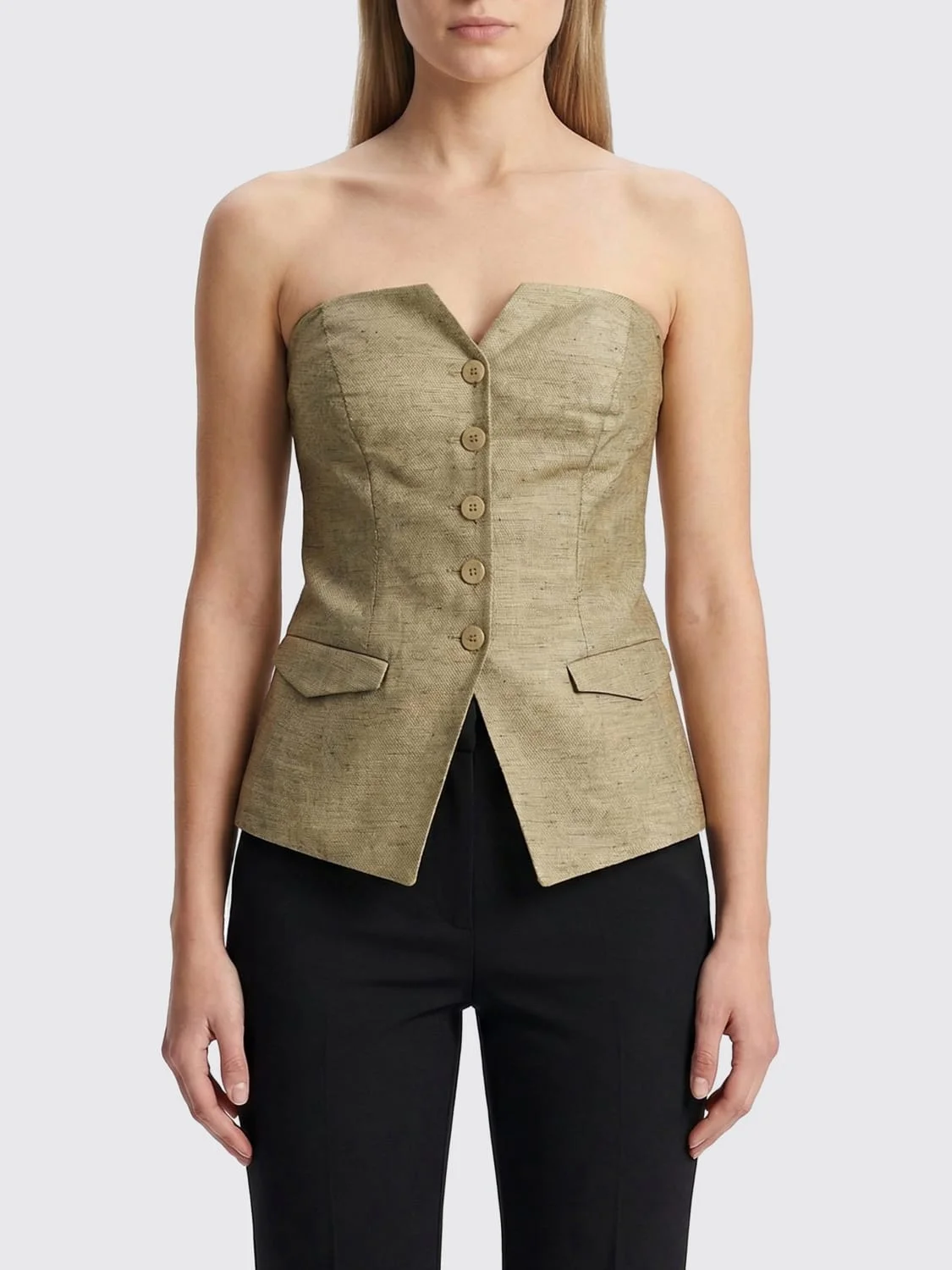 Lurex Linen Bustier Top with front button closure
