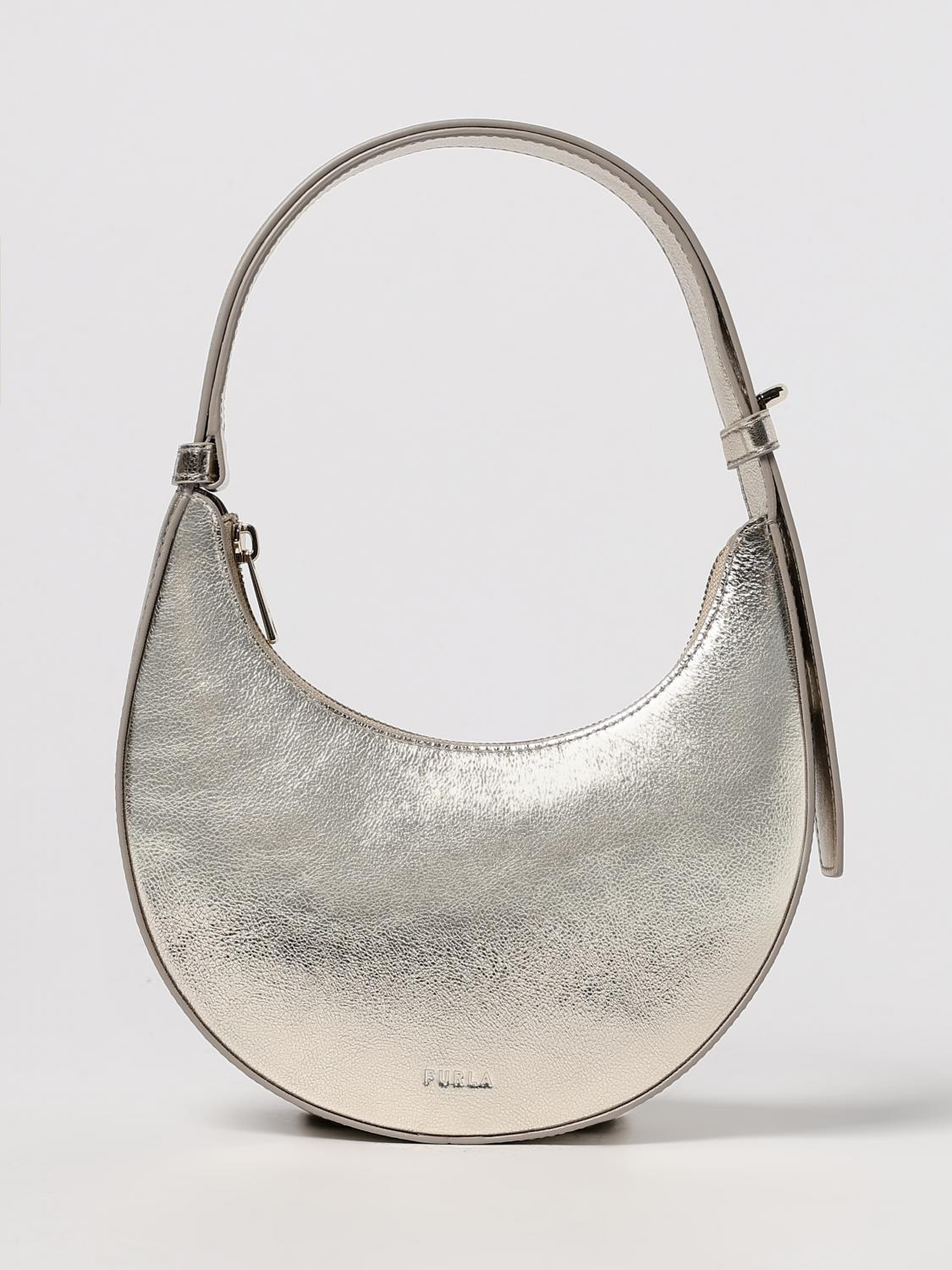 DESCRIPTION - Logo: Engraved, Lettering - Lining: 3 card slots - Model: Hobo - Closure: With zip - Shape: Round - Handle: Adjustable - Materials: Tumbled leather - Pattern: Plain-colored DETAILS AND CARE Composition 100% PELLE SIZE AND FIT Sizes Width : 20,5 cm Height: 12 cm Depth: 3 cm Designer code: WE00649BX4150 VAN00 Giglio Code: H47796 Designer: Furla Collection: Furla Woman Category: Bags Furla