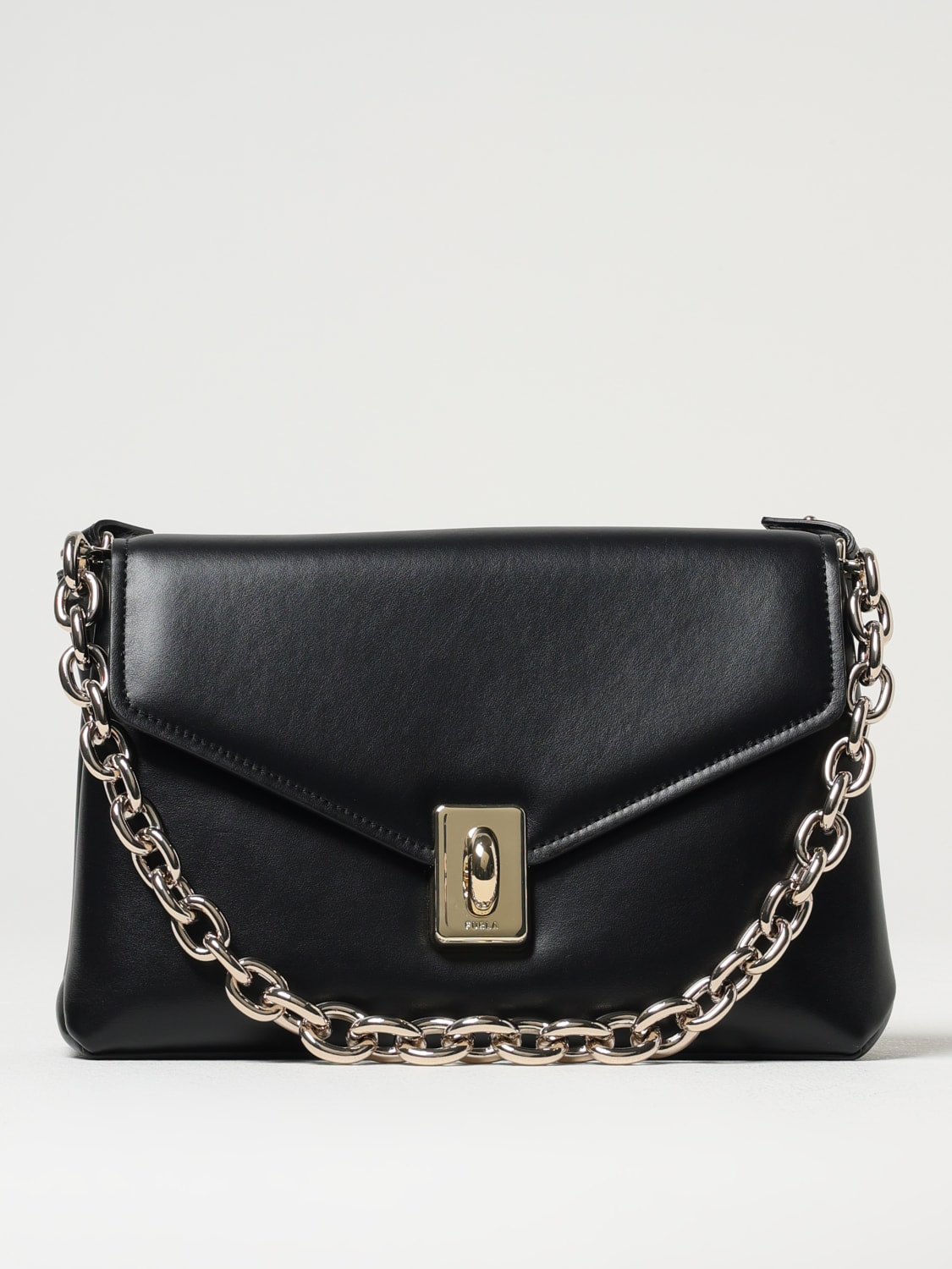 DESCRIPTION - Logo: Engraved - Lining: With zip pocket - Model: Shoulder - Shape: Rectangular - Handle: Metal mesh - Shoulder strap: Adjustable and removable - Closure: With flap and magnetic buttons - Materials: Smooth cowhide - Pattern: Plain-colored DETAILS AND CARE Composition 100 AF SIZE AND FIT Sizes Width : 27 cm Height: 17,5 cm Depth: 9,5 cm Designer code: WB01448BX3227 O6000 Giglio Code: 420606 Designer: Furla Collection: Furla Woman Category: Bags Furla