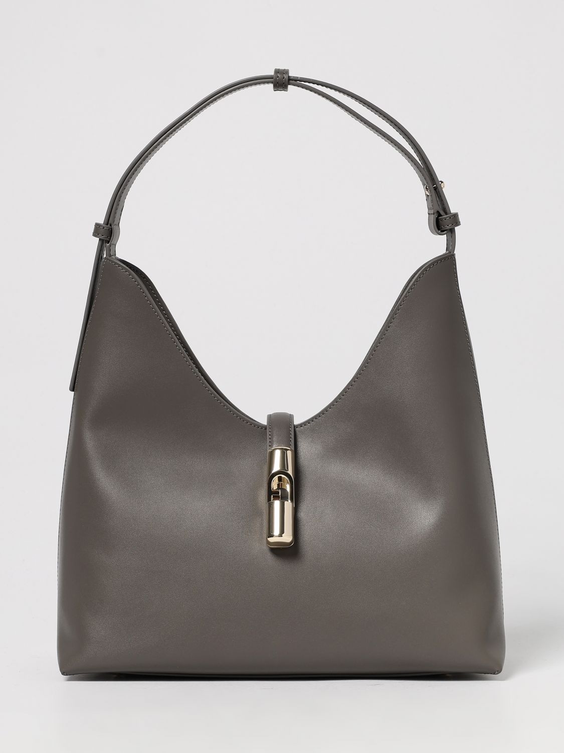 DESCRIPTION - Logo: Metallic - Lining: With zip pocket - Model: Shoulder - Shape: Flared - Handle: Adjustable - Closure: With tab and magnetic button - Materials: Smooth leather - Pattern: Plain-colored DETAILS AND CARE Composition 100%LEATHER SIZE AND FIT Sizes Width : 30,5 cm Height: 30 cm Depth: 16 cm Designer code: WB01499BX3104 4283S Giglio Code: 434410 Designer: Furla Collection: Furla Woman Category: Bags Furla