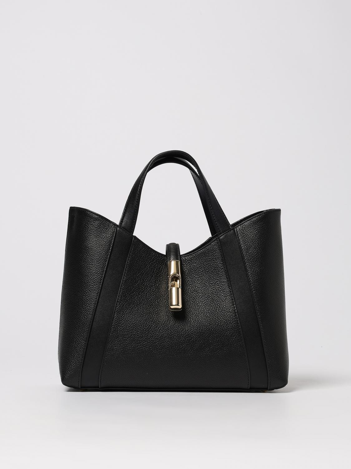 DESCRIPTION - Logo: Lettering - Lining: Fabric - Model: Hand - Bottom: Metal - Shape: Rectangular - Handle: Double - Shoulder strap: Adjustable and removable - Closure: With tab and magnetic button - Materials: Grained cowhide - Pattern: Plain-colored DETAILS AND CARE Composition 0735-E-100%LEATHER; I-90%PL+10%LEATHER SIZE AND FIT Sizes Width : 28 cm Height: 23 cm Depth: 13 cm Designer code: WB01789BX3353 O6000 Giglio Code: 434392 Designer: Furla Collection: Furla Woman Category: Bags Furla