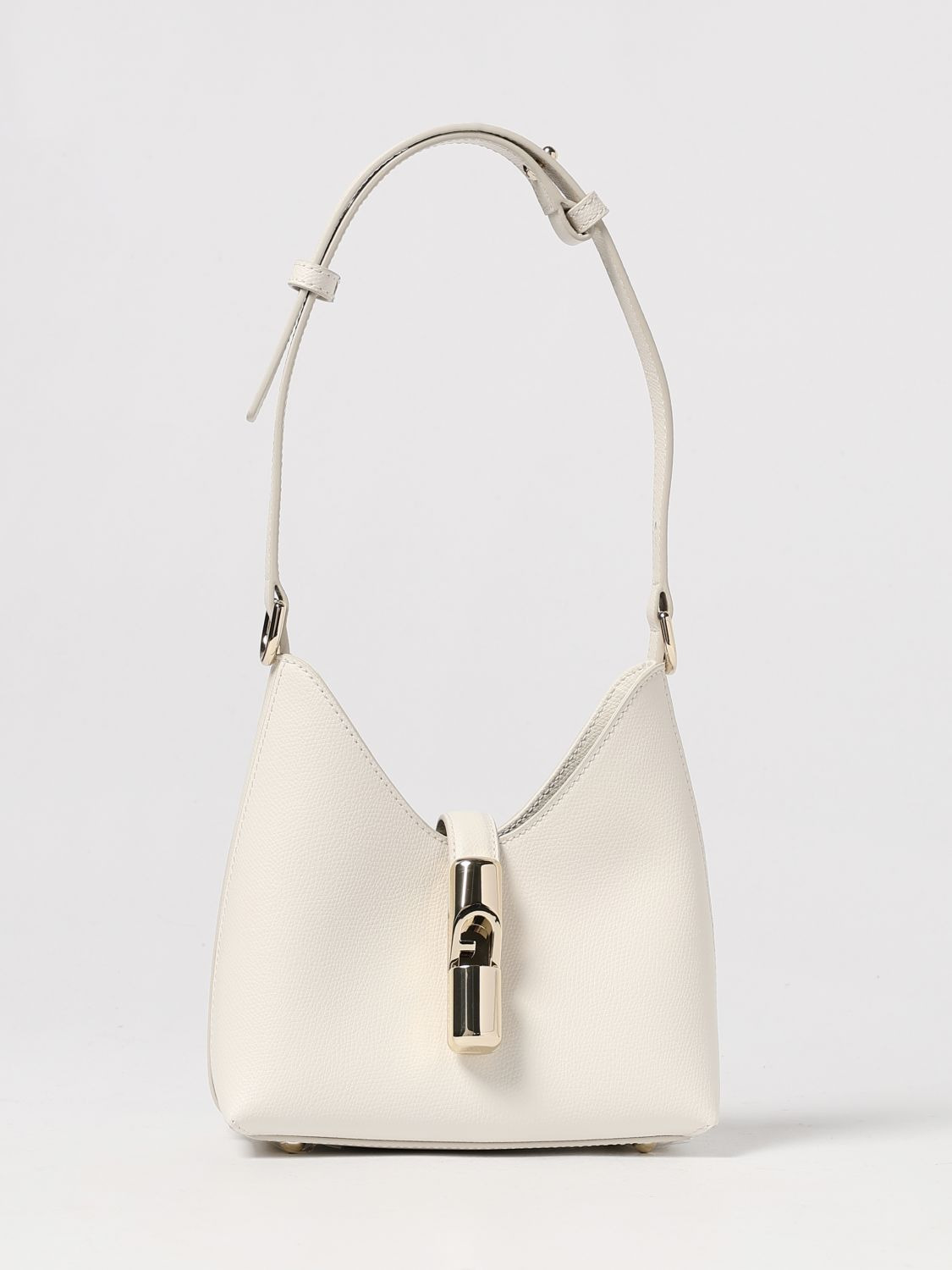 DESCRIPTION - Logo: Monogram - Lining: With zip pocket - Model: Shoulder - Bottom: Metal, With protective feet at the bottom - Shape: Flared - Handle: Adjustable - Closure: With tab and magnetic button - Materials: Grained cowhide - Pattern: Plain-colored DETAILS AND CARE Composition 100%LEATHER SIZE AND FIT Sizes Width : 17,5 cm Height: 18,5 cm Depth: 10 cm Designer code: WE00820ARE000 PNN00 Giglio Code: 434428 Designer: Furla Collection: Furla Woman Category: Bags Furla