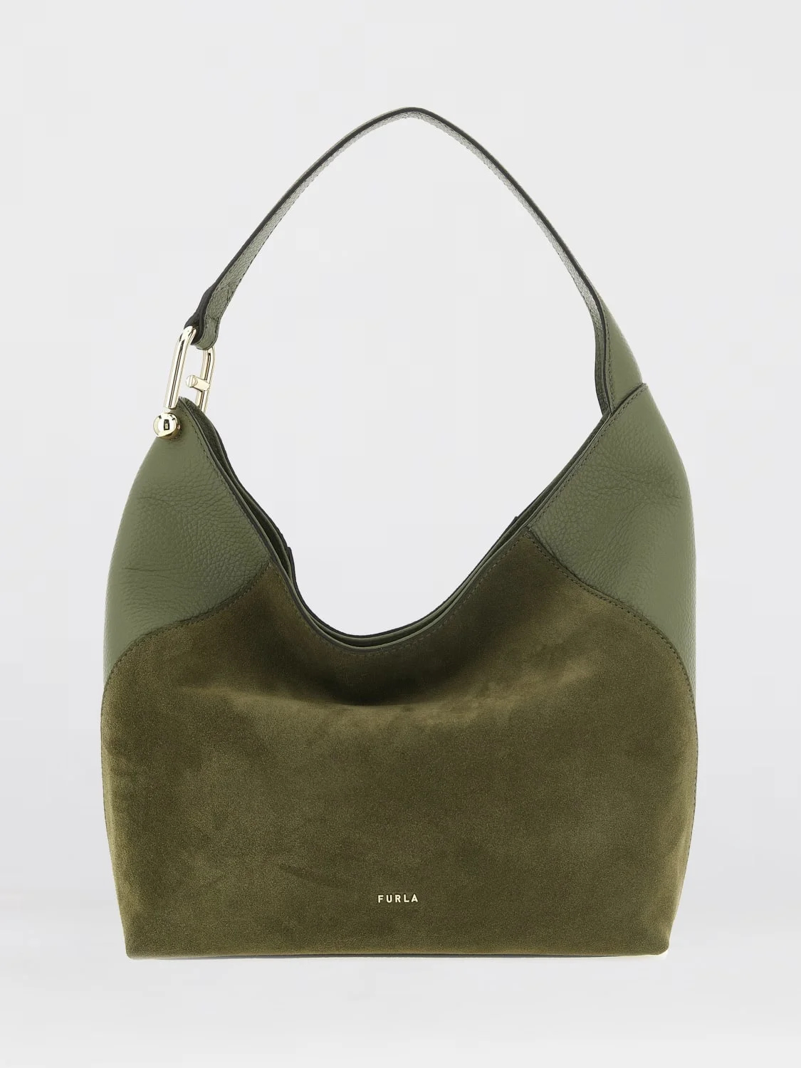 DESCRIPTION - Style: Country , Minimal - Logo: Lettering, Metallic - Lining: With zip pocket - Model: Shoulder - Closure: Magnetic - Shape: Rectangular - Handle: Flat - Occasion: Morning - Materials: Hammered calfskin, Suede calfskin - Pattern: Plain-colored DETAILS AND CARE Composition 100%LEATHER SIZE AND FIT Sizes Width : 29 cm Height: 25 cm Depth: 11 cm Designer code: WB01900BX1895 4554S Giglio Code: 442163 Designer: Furla Collection: Furla Woman Category: Bags Furla