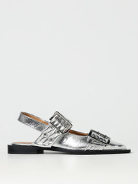 DESCRIPTION - Logo: Engraved - Lining: With logo - Model: Slingback - Closure: With double belt with buckles - Toe: Almond - Heel: With stretch strap - Sole: Rubber - Materials: Syntethic laminated leather - Pattern: Plain-colored DETAILS AND CARE Composition GENERAL POLYESTER 100 - SIZE AND FIT Sizes not available Designer code: S2725 018 Giglio Code: G40647 Designer: Ganni Collection: Ganni Woman Category: Shoes Ganni