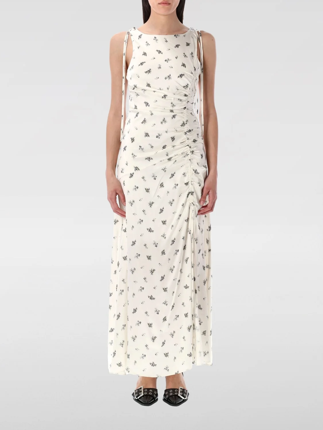 DESCRIPTION - Style: Casual - Shoulders: Regular - Waist: With drawstrings - Bottom: With straight hemline - Neckline: Round - Length: Long dresses - Occasion: Morning dresses - Sleeves: Off-the-shoulder dresses - Materials: Jersey - Pattern: Floral DETAILS AND CARE Composition not available SIZE AND FIT Sizes not available Size and fit Regular fit Designer code: W0262 135 Giglio Code: G71091 Designer: Ganni Collection: Ganni Woman Category: Clothing Ganni