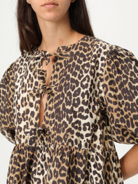 DESCRIPTION - Style: Urban-street - Neckline: V neckline - Shoulders: Regular - Sleeves: Balloon - Closure: Back closure with laces - Bottom: With straight hemline - Materials: Organic cotton - Pattern: Animal print DETAILS AND CARE Composition Organic Cotton 100% SIZE AND FIT Sizes not available Size and fit Regular fit Designer code: F9758 943 Giglio Code: G55153 Designer: Ganni Collection: Ganni Woman Category: Clothing Ganni
