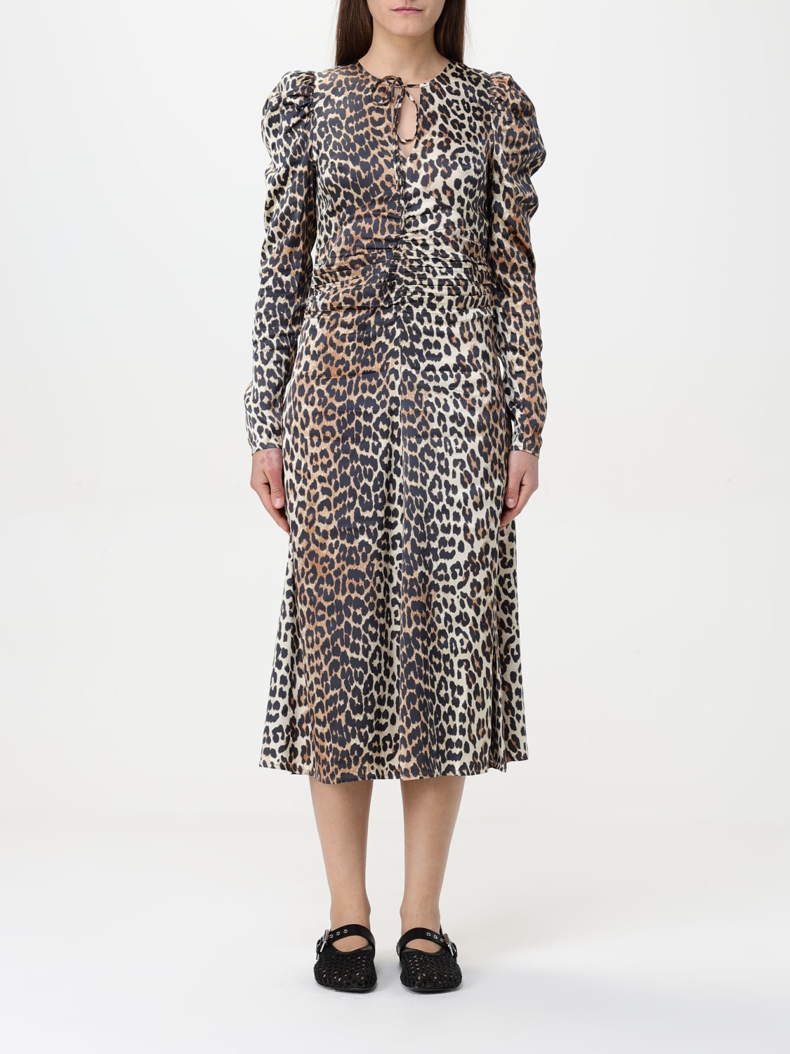 DESCRIPTION - Style: Casual - Neckline: Crewneck - Shoulders: Regular - Pockets: Patch pocket - Waist: Curled - Bottom: With straight hemline - Length: Midi dresses - Occasion: Morning dresses - Sleeves: Long sleeve dresses - Materials: Organic cotton - Pattern: Animal print DETAILS AND CARE Composition 95% Viscose 5% Spandex SIZE AND FIT Sizes not available Size and fit Regular fit Designer code: W0330 943 Giglio Code: G54730 Designer: Ganni Collection: Ganni Woman Category: Clothing Ganni