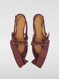 DESCRIPTION - Logo: Engraved - Details: With metal eyelets - Lining: With logo - Model: Slingback - Toe: Almond - Sole: Rubber - Closure: With adjustable strap - Heel: With adjustable strap - Sustainable: Made with recycled materials - Materials: Viscose - Pattern: Bows DETAILS AND CARE Composition Polyester SIZE AND FIT Sizes not available Designer code: S2860 234 Giglio Code: H11010 Designer: Ganni Collection: Ganni Woman Category: Shoes Ganni