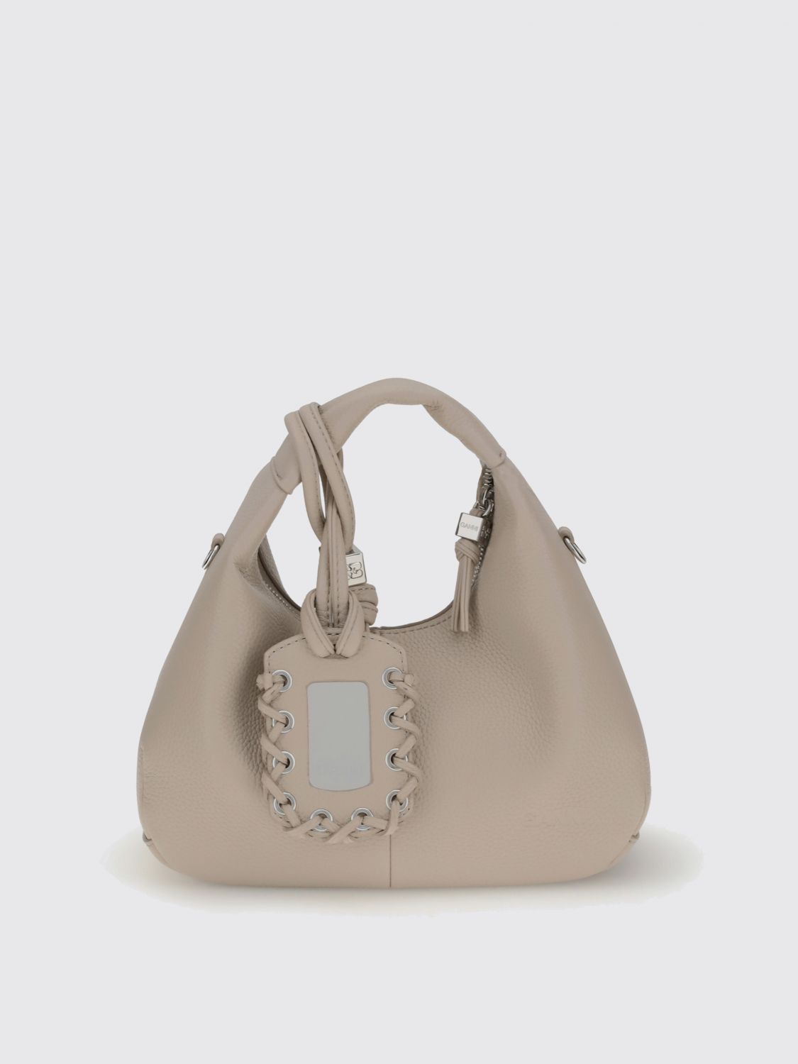 DESCRIPTION - Style: Classic - Logo: Ganni Butterfly - Details: With mirror - Model: Hand - Closure: With zip - Shape: Flared - Handle: Flat - Sustainable: Made with recycled materials - Materials: Grained synthetic leather - Pattern: Plain-colored DETAILS AND CARE Composition GENERAL RECYCLED LEATHER 65 - GENERAL POLYURE SIZE AND FIT Sizes Width : 24 cm Height: 24 cm Depth: 12 cm Designer code: A6978 686 Giglio Code: H40516 Designer: Ganni Collection: Ganni Woman Category: Bags Ganni