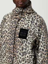DESCRIPTION - Style: Urban-street - Shoulders: Relaxed - Sleeves: Long - Cuffs: Stretch - Pockets: America - Bottom: With straight hemline - Model: With hood - Closure: Concealed - Length: Short jackets - Materials: Recycled nylon - Pattern: Animal print DETAILS AND CARE Composition not available SIZE AND FIT Sizes not available Size and fit Relaxed fit Designer code: W0738 859 Giglio Code: H21412 Designer: Ganni Collection: Ganni Woman Category: Clothing Ganni