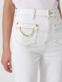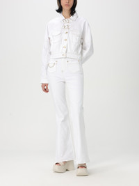 DESCRIPTION - Length: Long - Pockets: Patch pocket - Waist: High waist - Logo: With logo - Closure: 1-button - Occasion: Morning - Materials: Cotton denim - Pattern: Plain-colored DETAILS AND CARE Composition 99% cotton, 1% elastane SIZE AND FIT Sizes not available Size and fit Flared pants Designer code: J1659 151 Giglio Code: G50541 Designer: Ganni Collection: Ganni Woman Category: Clothing Ganni