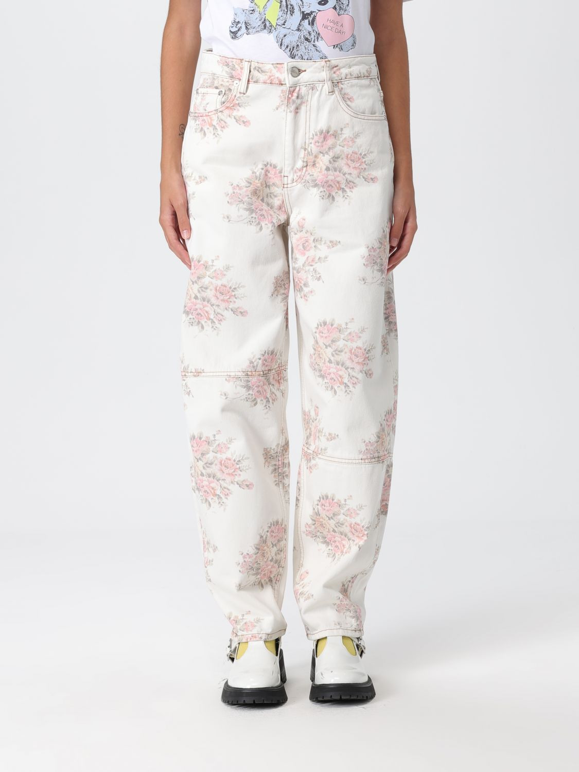DESCRIPTION - Style: Urban-street - Pockets: 5-pocket - Waist: High waist - Bottom: With straight hemline - Closure: With button and zip - Materials: Cotton denim - Pattern: Floral DETAILS AND CARE Composition GENERAL COTTON 100 - SIZE AND FIT Sizes not available Size and fit Regular fit Designer code: J1886 135 Giglio Code: H40526 Designer: Ganni Collection: Ganni Woman Category: Clothing Ganni