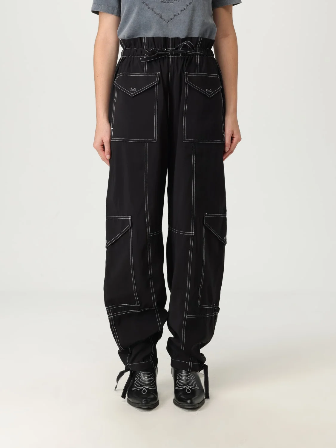 DESCRIPTION - Style: Urban-street - Pockets: America - Waist: High waist - Bottom: With straight hemline - Materials: Viscose blend - Pattern: Plain-colored DETAILS AND CARE Composition 86% viscose, 14% polyester SIZE AND FIT Sizes not available Size and fit Regular fit Designer code: F8807 099 Giglio Code: H13834 Designer: Ganni Collection: Ganni Woman Category: Clothing Ganni