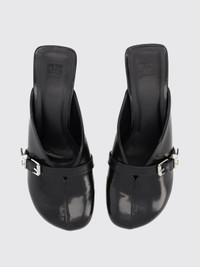 BLACK HEELED SUE MULES