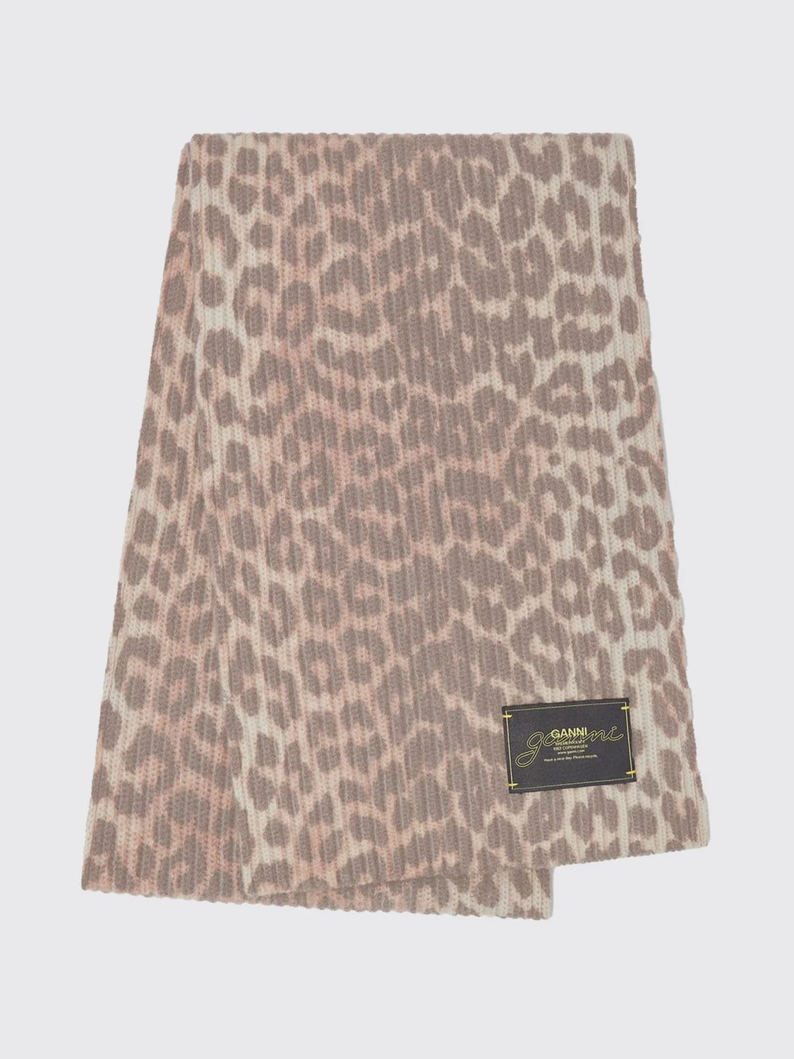 DESCRIPTION - Bottom: With straight hemline - Shape: Rectangular - Logo: With logo - Materials: Wool blend - Pattern: Animal print DETAILS AND CARE Composition Wool | 80% Wool 20% polyamide SIZE AND FIT Sizes not available Designer code: A7267 943 Giglio Code: H61580 Designer: Ganni Collection: Ganni Woman Category: Accessories Ganni