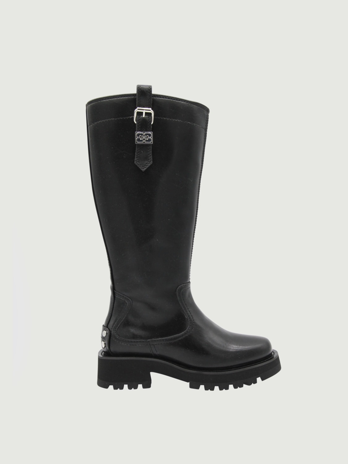 DESCRIPTION - Logo: Ganni Butterfly - Details: With back tab - Model: Slip on - Toe: Round - Shaft: Knee-high - Sole: Rubber - Heel: Low heel - Lining: With logo - Pattern: Plain-colored - Materials: Oleatex DETAILS AND CARE Composition | SIZE AND FIT Sizes not available Designer code: S3022 099 Giglio Code: H25465 Designer: Ganni Collection: Ganni Woman Category: Shoes Ganni