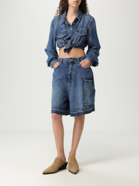 DESCRIPTION - Style: Casual, Urban-street - Length: Knee high - Closure: With button and zip - Pockets: 5-pocket, Cargo - Waist: With loops, Medium - Bottom: With straight hemline - Materials: Cotton denim - Pattern: Plain-colored DETAILS AND CARE Composition AF SIZE AND FIT Sizes not available Size and fit Regular fit Designer code: J1702 567 Giglio Code: G95364 Designer: Ganni Collection: Ganni Woman Category: Clothing Ganni