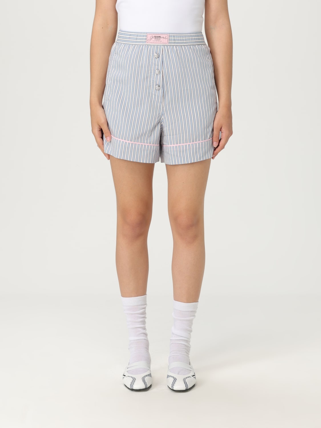 DESCRIPTION - Style: Casual, Sporty - Logo: Contrasting - Length: Short - Pockets: America - Waist: Stretch, Medium waist - Bottom: With straight hemline - Materials: Cotton blend - Pattern: Striped DETAILS AND CARE Composition 81%viscose, 19%polyamide SIZE AND FIT Sizes not available Size and fit Regular fit Designer code: W0388 326 Giglio Code: G96963 Designer: Ganni Collection: Ganni Woman Category: Clothing Ganni