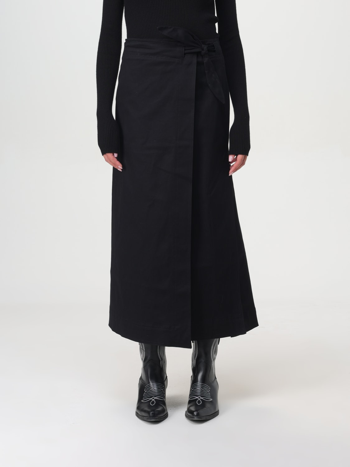 DESCRIPTION - Length: Long - Waist: High , With waist band to tie - Bottom: With straight hemline - Model: Wrap-around - Materials: Cotton - Pattern: Plain-colored DETAILS AND CARE Composition 98% cotton, 2% elastane SIZE AND FIT Sizes not available Size and fit Regular fit Designer code: F9613 099 Giglio Code: F79670 Designer: Ganni Collection: Ganni Woman Category: Clothing Ganni
