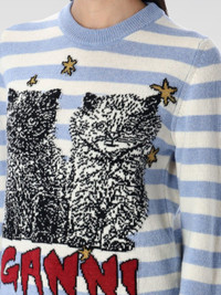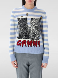 DESCRIPTION - Style: Underground - Logo: Contrasting - Model: Crewneck - Neckline: Crewneck - Shoulders: Regular - Sleeves: Long - Cuffs: Ribbed - Bottom: With straight hemline - Materials: Wool blend - Pattern: Graphic DETAILS AND CARE Composition 44% wool 34% recycled wool 19% recycled polya SIZE AND FIT Sizes not available Size and fit Regular fit Designer code: K23692678 628 Giglio Code: G58572 Designer: Ganni Collection: Ganni Woman Category: Clothing Ganni