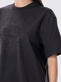 BLACK HEAVY COTTON DROP SHOULDER HEART T-SHIRT