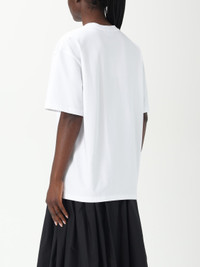 DESCRIPTION - Style: Basic - Model: Crewneck - Neckline: Crewneck - Shoulders: Relaxed - Sleeves: Short - Bottom: With straight hemline - Materials: Organic cotton - Pattern: Plain-colored DETAILS AND CARE Composition 100% organic cotton SIZE AND FIT Sizes not available Size and fit Regular fit Designer code: T4033 151 Giglio Code: G88558 Designer: Ganni Collection: Ganni Woman Category: Clothing Ganni