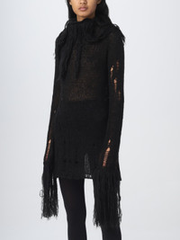 Fringed open-knit mini dress